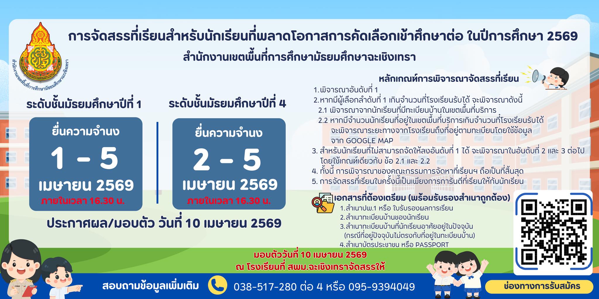 กำหนดการยื่นความจำนงให้สำนักงานเขตพื้นที่การศึกษามัธยมศึกษาฉะเชิงเทราจัดหาที่เรียนให้